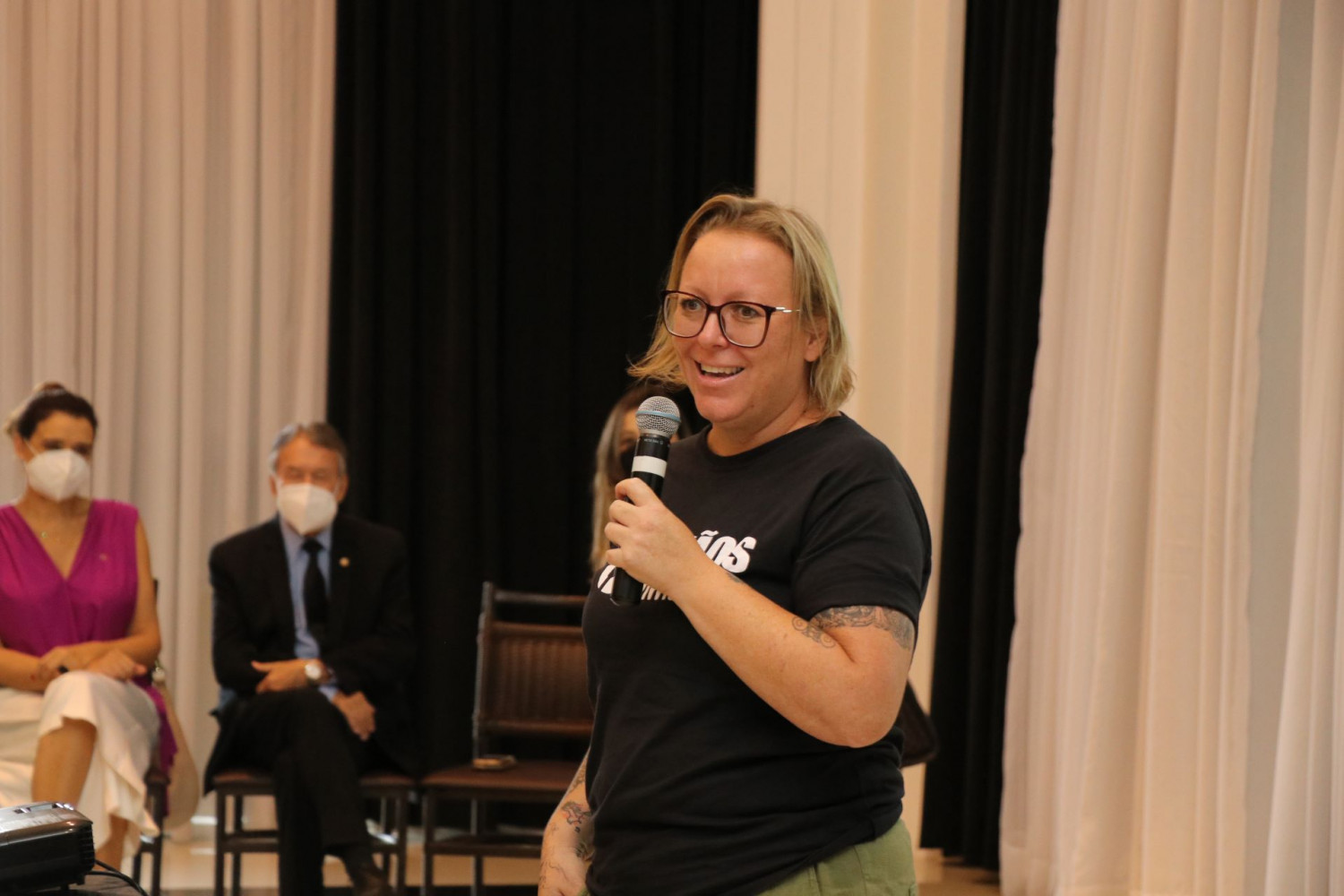 A historiadora Vanessa Lima, presidente da ONG Mãos Invisíveis apresentou o trabalho realizado, desde a fundação da instituição, em 2017. Expos os desafios, exemplificando os casos de violência vivenciados desde quando começaram a atuar com a população de rua desde 2018, focando nas mulheres, principalmente nas gestantes. “Nosso papel é de dar voz a pessoas que estão fragilizadas lutando diariamente para sobreviverem”, definiu. Ela também retratou a dificuldade em se ter dados oficiais, a Mãos Invisíveis estima que, em Curitiba, há entre 5 mil a 7 mil pessoas em situação de rua. “Os números são importantes quando se pensa em política pública. Sabemos quantos gatos tem no Brasil, sabemos quantos cachorros existem, mas não sabemos qual é a população de rua. É inviável porque não temos como pensar em política pública porque não sabemos para quem é”.