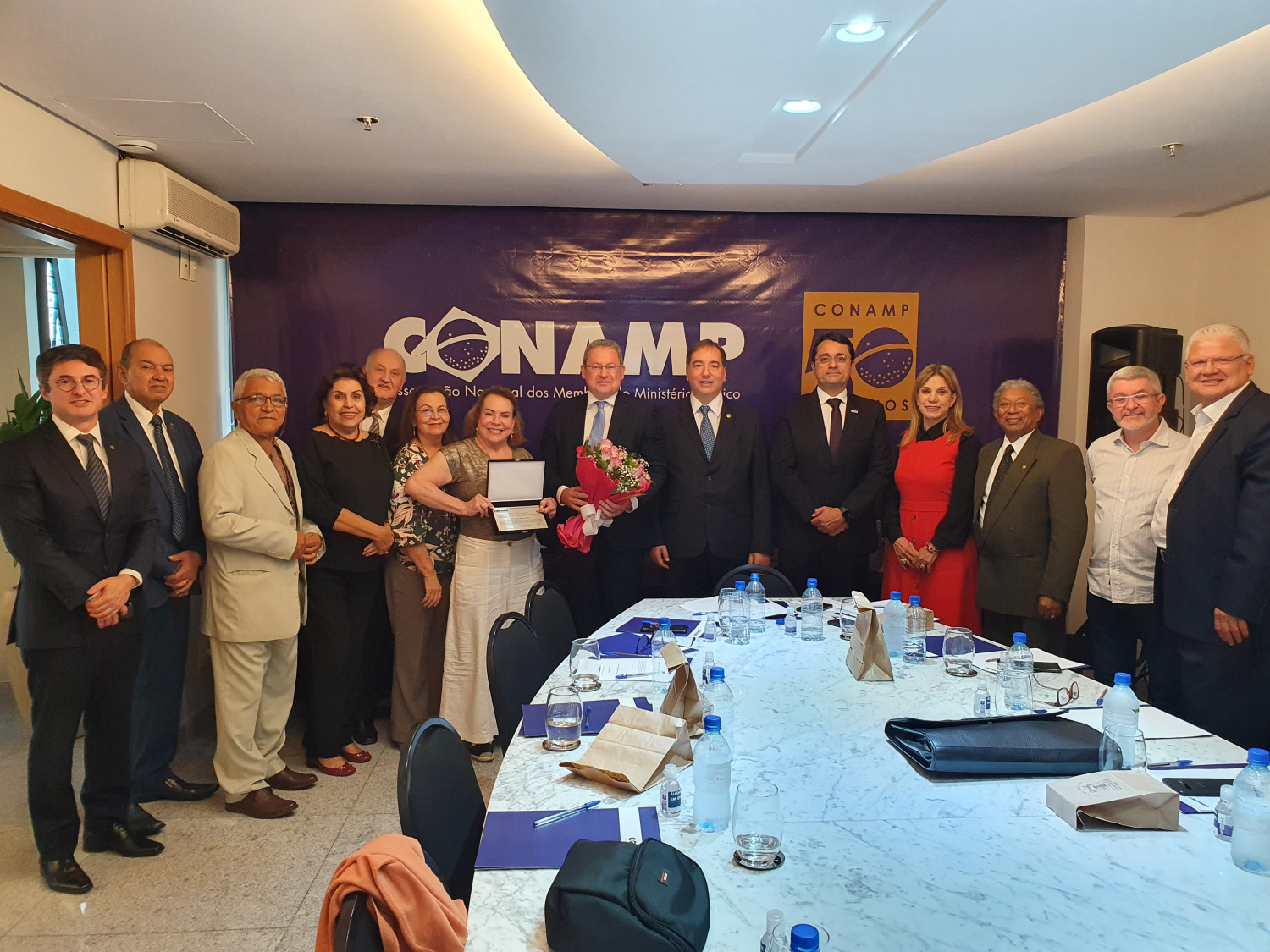 Ainda, Manoel Murrieta, presidente da CONAMP entregou uma Moção de Reconhecimento à Ana Maria Mai, promotora de Justiça aposentada (Ministério Público do Espírito Santo - MPES), pela sua profícua atuação como coordenadora da Comissão de Aposentados da Associação Nacional, nos biênios 2018-2020 e 2020-2022; e por sua liderança que a marcaram, de forma indelével, com o objetivo de defender a valorização dos membros aposentados e pensionistas associados, assegurando a efetividade de suas garantias e prerrogativas constitucionais.