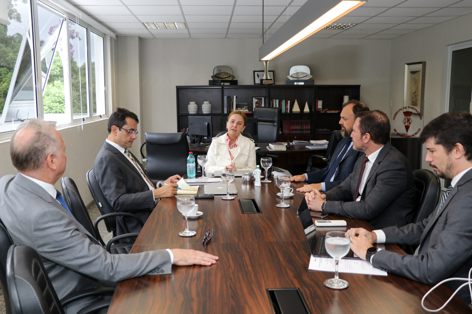 No período da tarde, o 1º vice-presidente da CONAMP, Tarcísio José Sousa Bonfim, a presidente da APMP, Symara Motter, e o 1º vice-presidente, Fernando da Silva Mattos, participaram de uma reunião com a prefeita de Pinhais, Rosa Maria.