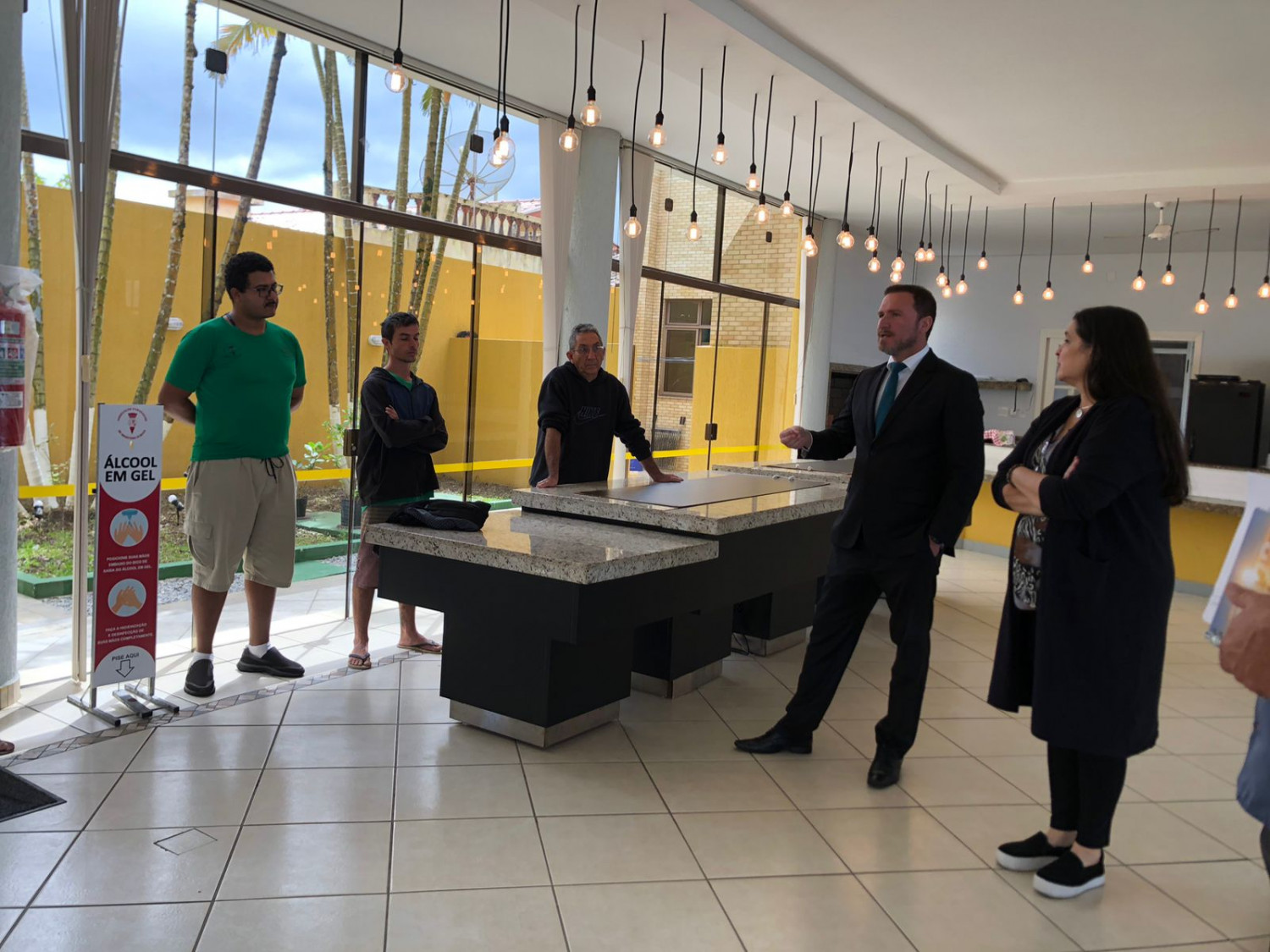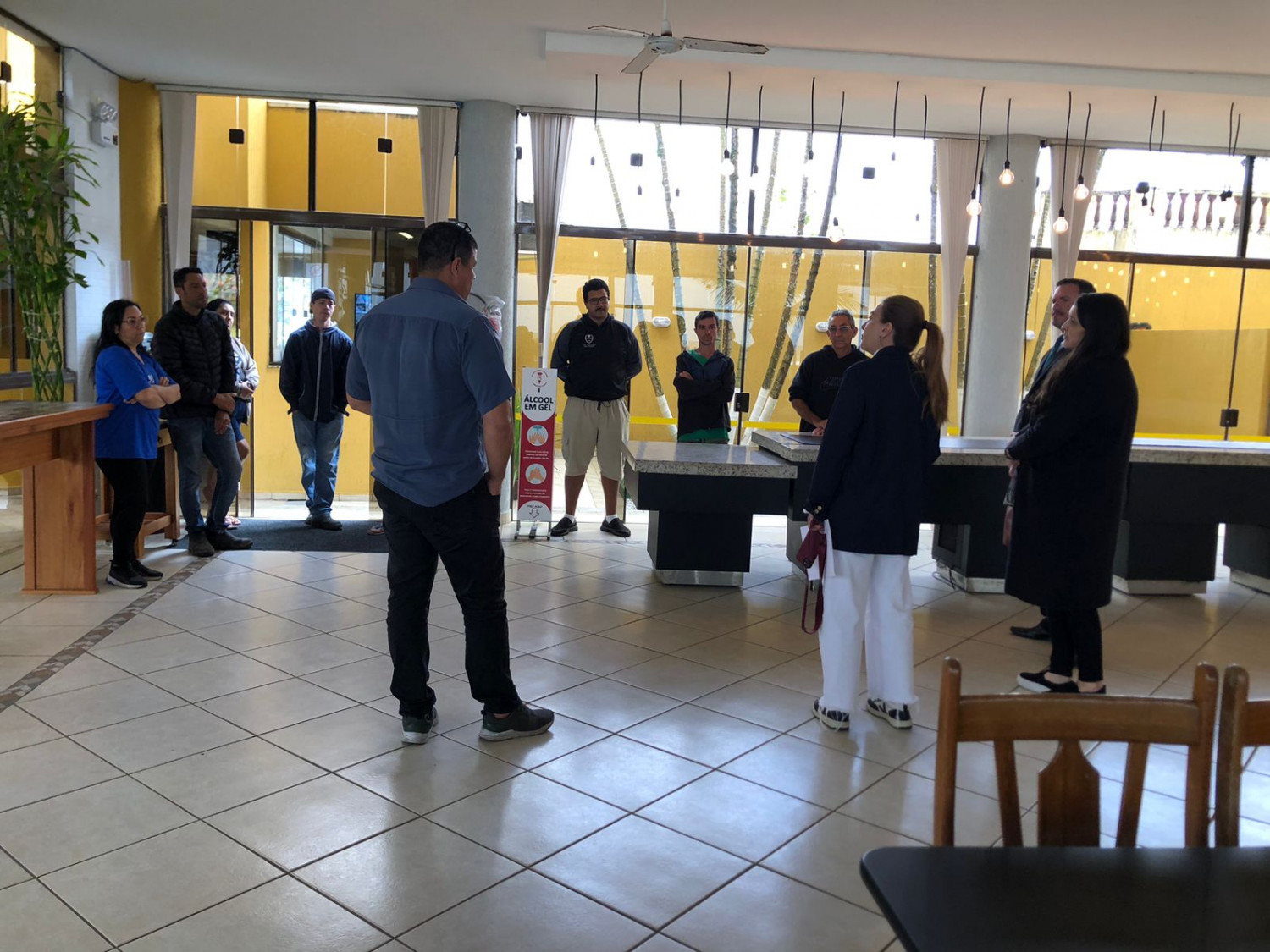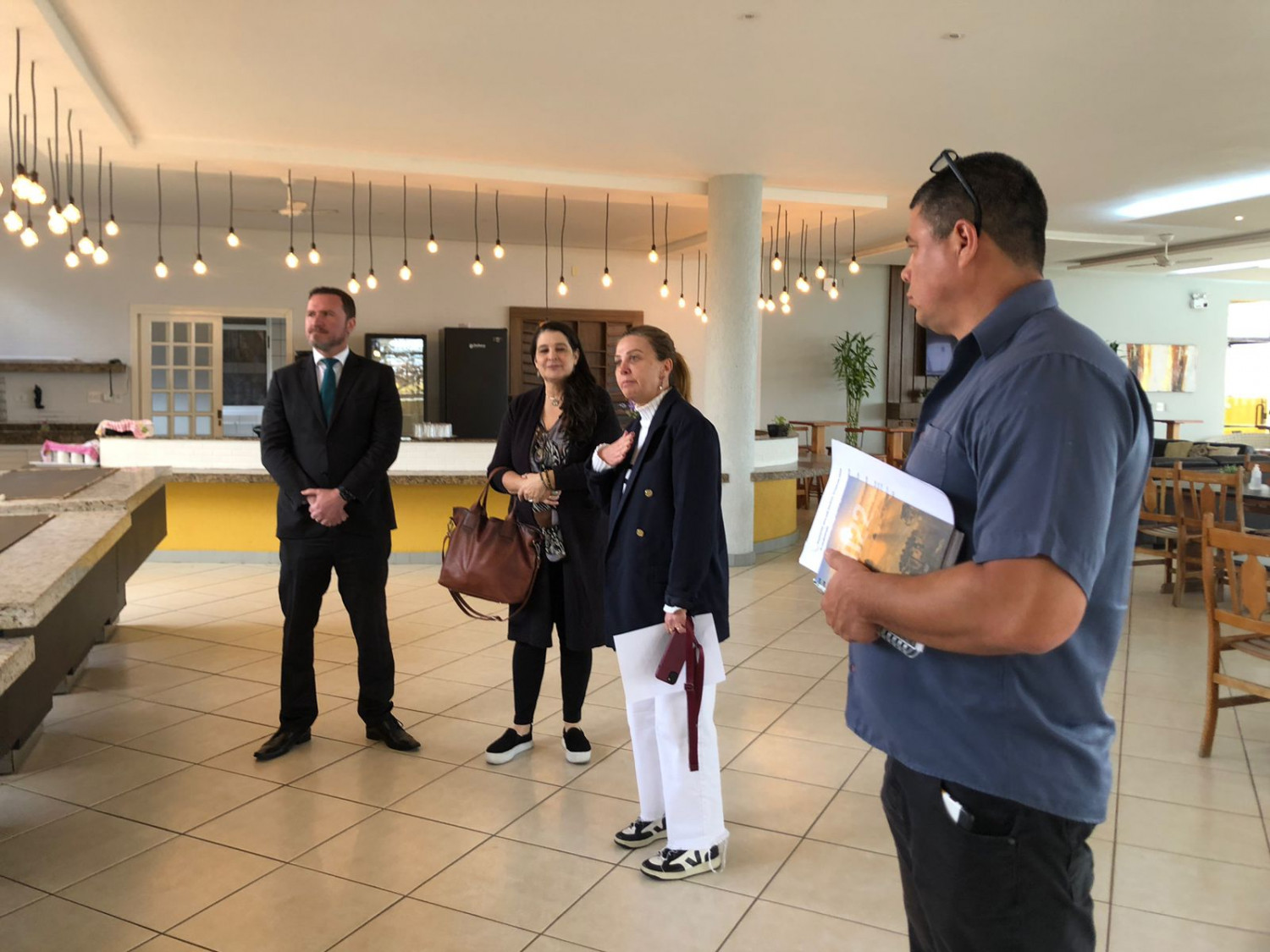 Os diretores analisaram as condições dos espaços e das instalações. A inspeção foi realizada nos quartos, salões, churrasqueiras, restaurante, cozinha, academia, canchas, banheiros, enfim, em todos os espaços da sede.