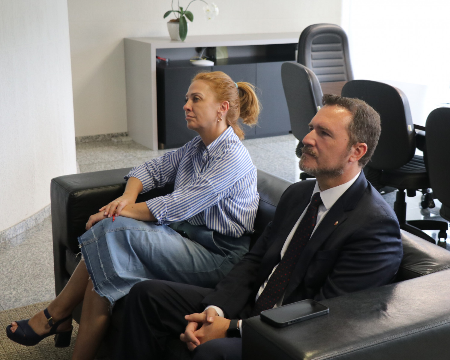 A Presidente Symara Motter e o 1º Vice-Presidente da APMP, Fernando da Silva Mattos, se reuniram, na tarde desta segunda-feira (24), com a associada Maira Mardegan Galiano Humphreys, Diretora da subsede de Londrina.