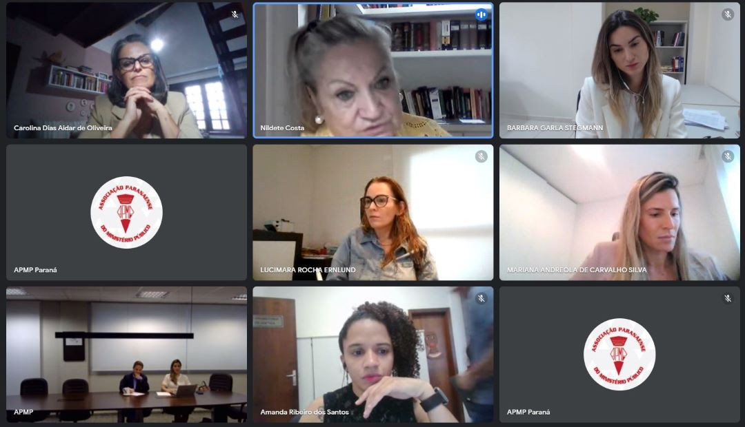 Presencialmente participaram do encontro: a presidente da APMP, Symara Motter; e a Diretora de Mulheres Associadas, Mariana Dias Mariano. De maneira on-line estavam as seguintes associadas e promotoras de Justiça: Carolina Dias Aidar de Oliveira; Mariana Andreola de Carvalho Silva; Lucimara Rocha Ernlund; Amanda Ribeiro dos Santos; Barbara Garla Stegmann; além da associada dependente, Nildete Dubinski Costa.