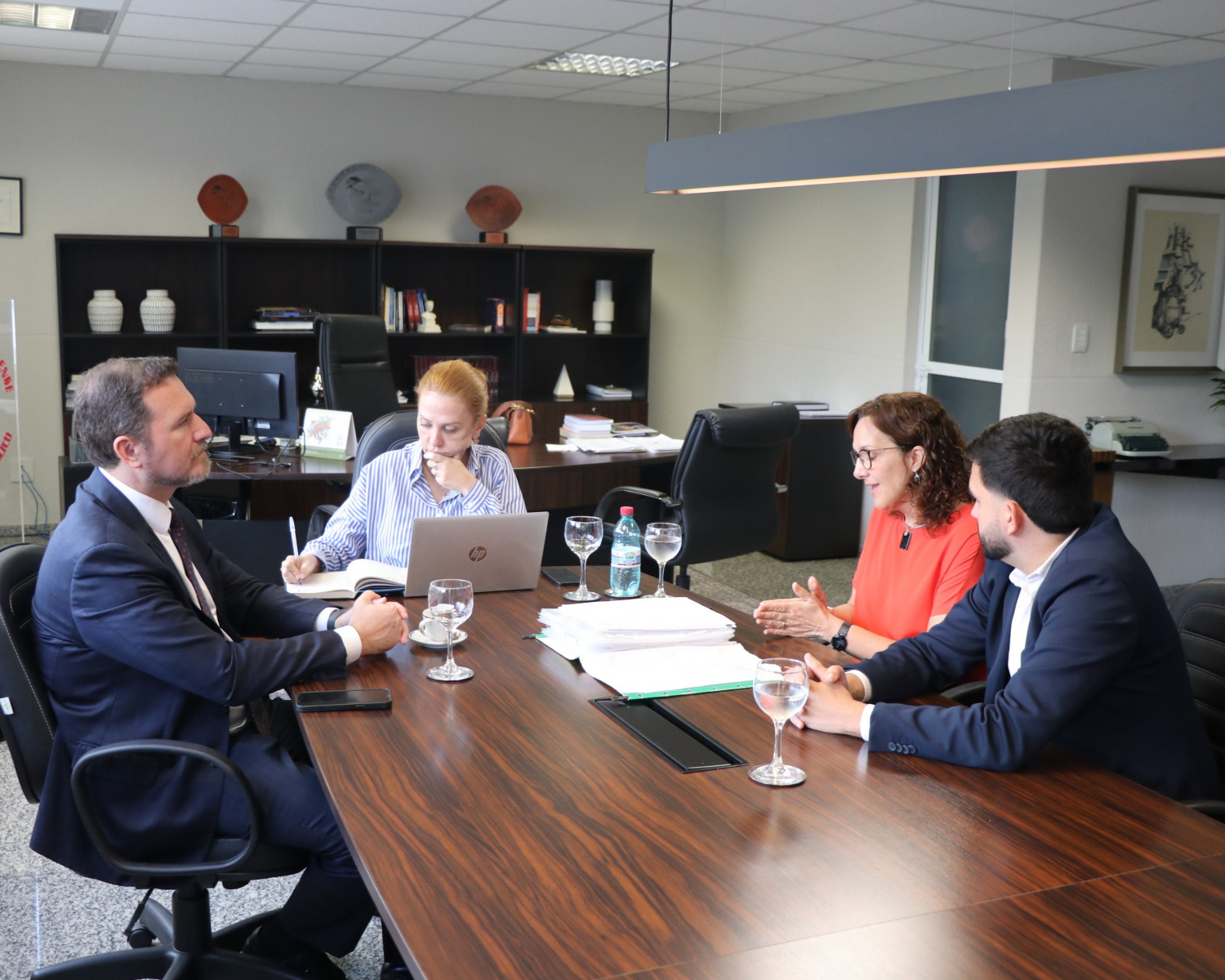 A Presidente da APMP, Symara Motter, e o 1º Vice-Presidente, Fernando da Silva Mattos, receberam, na tarde desta segunda-feira (24), os advogados Cláudia Salles Vilela Vianna e Delson Assunção Neto, do escritório Vilela Vianna, para mais uma reunião sobre o Regime de Previdência Complementar (RPC).