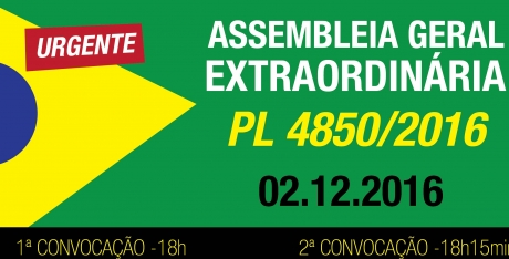 A Diretoria da Associação Paranaense do Ministério Público - APMP, por seu Presidente Cláudio Franco Felix, fazendo o uso das atribuições estatutárias previstas nos artigos 9º e 11, CONVOCA os associados para a ASSEMBLEIA GERAL EXTRAORDINÁRIA a ser realizada aos 02 (dois) dias do mês de dezembro do ano de dois mil e dezesseis (2016), sexta-feira, às 18h00m em 1ª Convocação e às 18h15m em 2ª Convocação, no auditório da Sede Administrativa desta Entidade, situada na Rua Mateus Leme, 2018, Centro Cívico, nesta Capital, para tratar sobre: