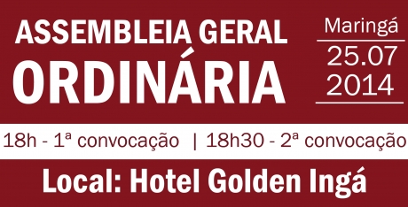 O local de realização da AGO será no Hotel Golden Ingá, situado na Rua Néo Alves Martins, n.º 2398, Zona 01, na cidade de Maringá.