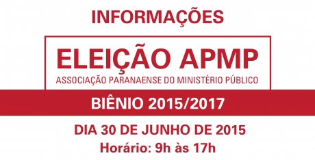 A Associação Paranaense do Ministério Público (APMP) realizará, na próxima terça-feira (30/06), a eleição da Diretoria e Conselho Fiscal para o biênio 2015/2017. A chapa "Integração e Transformação" é a única inscrita. Cláudio Franco Felix concorre à presidência da APMP. Este será o primeiro ano em que acontecerá a votação pela internet através da página da Associação.