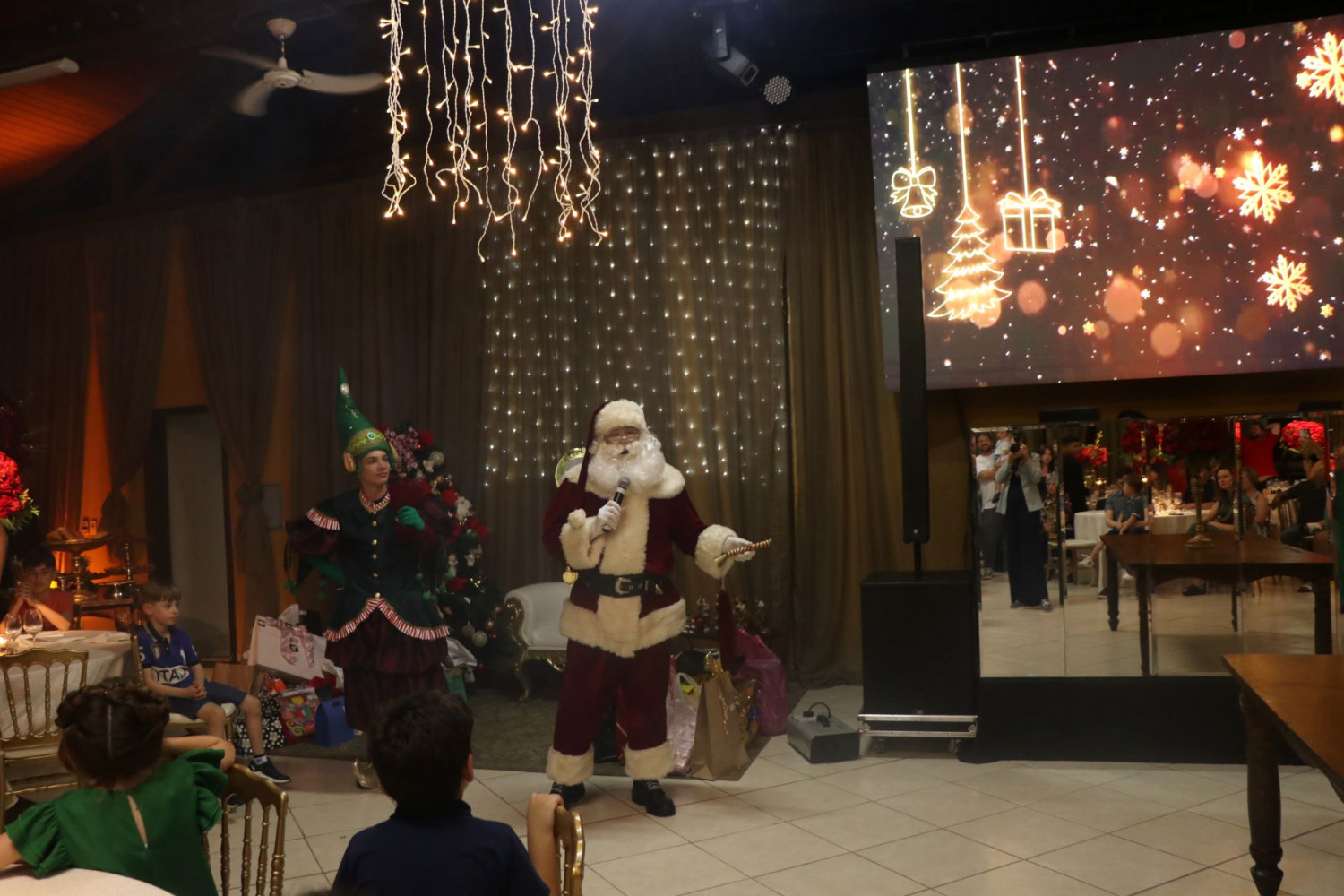 A noite de natal reuniu centenas de associados, familiares e convidados na sede litorânea da APMP, em Matinhos. A magia estava no ar desde o início da festa, com a decoração em tons natalinos, até a tão esperada hora da chegada do Papai Noel.