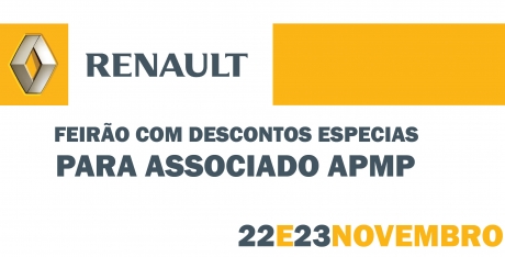 O associado da APMP, por meio do convênio firmado com a Renault, terá preços especiais na compra de veículos no Feirão Renault deste final de semana, 22 e 23 de novembro. Os descontos chegam a seis mil reais, desde que sigam as regras estabelecidas no convênio de desconto assinado com a associação.