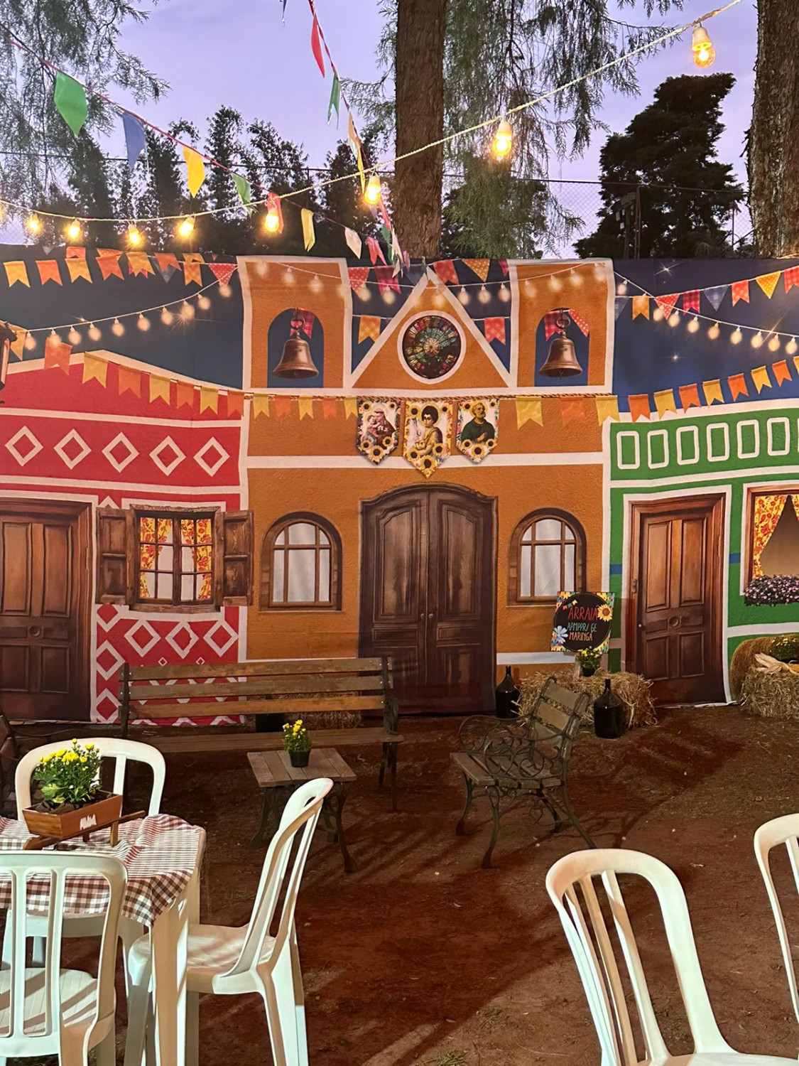 Além de bolos, doces, quentão, pipoca e pinhão, a festa contou com músicas típicas, um cenário especial, brinquedos e diversas brincadeiras para as crianças.