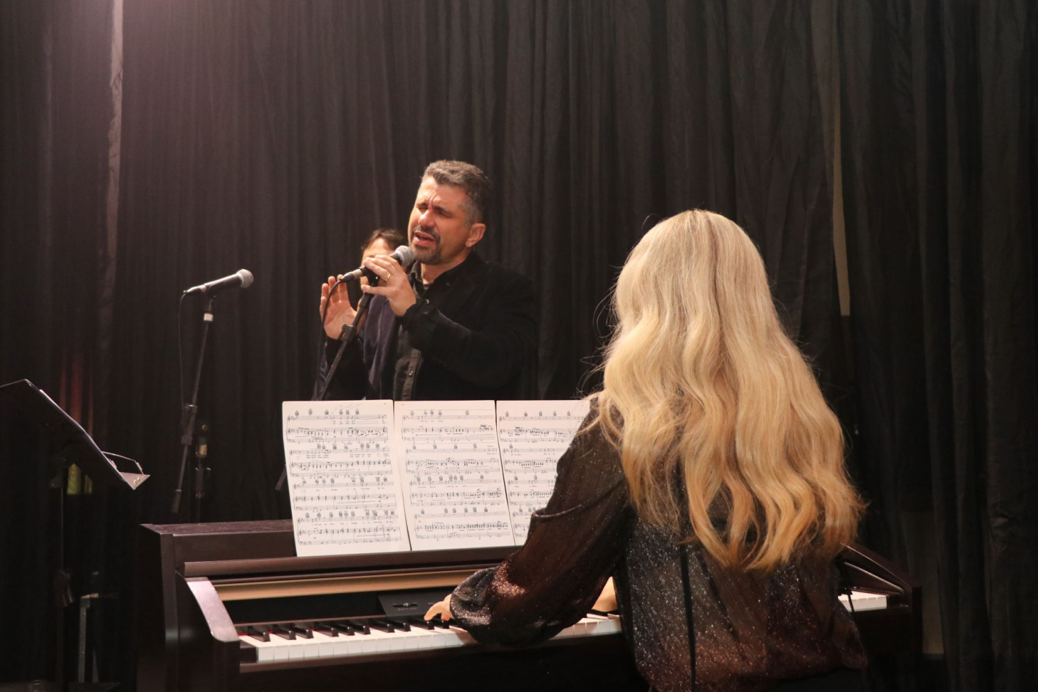 Após, o trio de piano e vozes encantou a todos com uma apresentação emocionante. Os associados Odoné Serrano, Ricardo Scartezini Marques e Rosana Mikrut Demchuk trouxeram dois clássicos da música internacional para encantar o público. Logo em seguida, o procurador de justiça aposentado Rui de Almeida Valente, realizou duas apresentações de Jazz. A primeira contou com a participação da associada Rosana Demchuk, no piano, e da convidada Caroline Osternack. Já a segunda, Rui e Caroline Osternack realizaram um dueto, voz e piano, respectivamente.