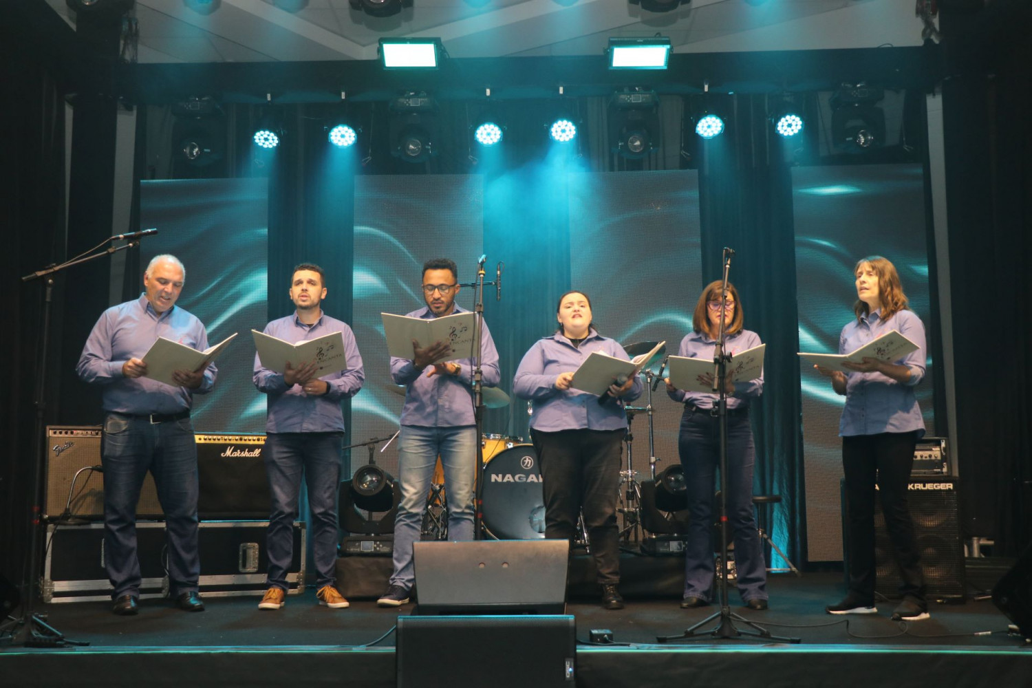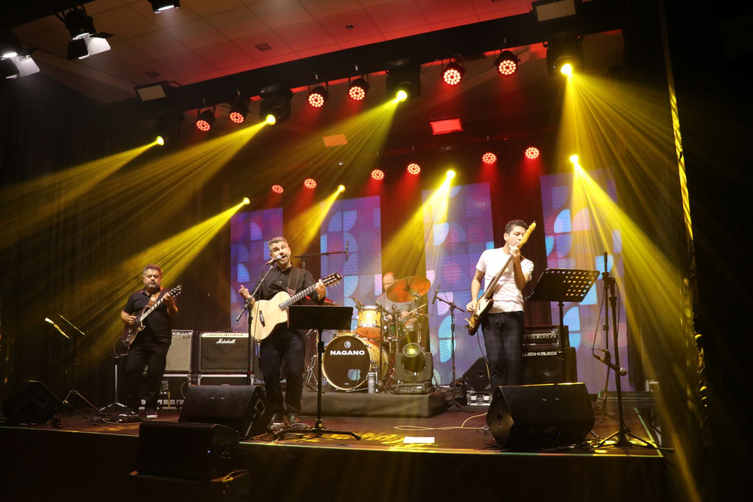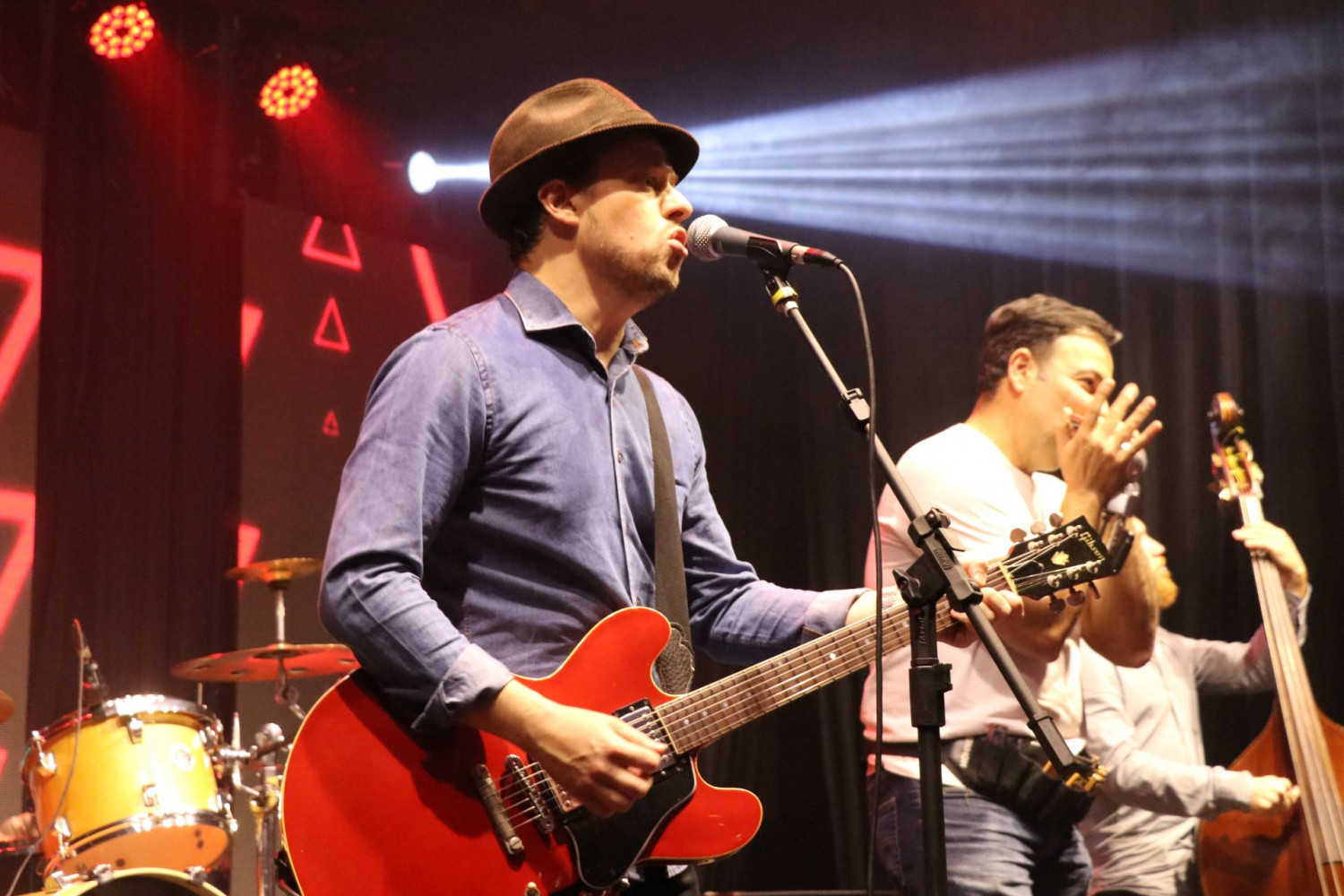 Voltando com as músicas internacionais, a banda The Mood, do associado Ricardo Marques, trouxe o Blues ao palco da APMP. A banda marcou presença com os diversos instrumentos, como o contrabaixo acústico e a gaita de boca, que preencheram o palco.