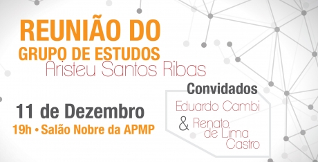 O Grupo de Estudos de Curitiba, Aristeu Santos Ribas, realizará uma reunião no dia 11 de dezembro a partir das 19h, no salão nobre da APMP. A pauta do grupo abordará a análise dos projetos de lei de ação civil pública, em tramitação na Câmara dos Deputados.