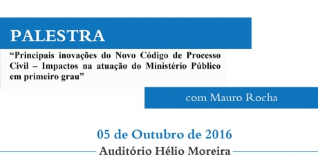 O Grupo de Estudos Rogério Luz, de Maringá, juntamente com o Centro de Estudos e Aperfeiçoamento Funcional, convidam os colegas promotores e procuradores de Justiça a participar da palestra “Principais inovações do Novo Código de Processo Civil - Impactos na atuação do Ministério Público”, ministrada por Mauro Sérgio Rocha. O evento ocorre no próximo dia 05 de outubro, quarta-feira, das 8h30 às 12h, no Auditório Hélio Moreira, localizado na Av. XV de Novembro, 701 - Paço da Prefeitura Municipal de Maringá.