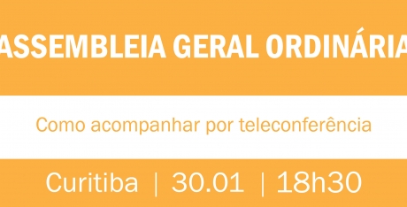 Nesta sexta-feira, 30 de janeiro de 2015, acontecerá a Assembleia Geral Ordinária, em Curitiba, no auditório da sede administrativa. A Assembleia será transmitida pela internet, em tempo real. Os associados que estiverem acompanhando poderão interagir via chat online.