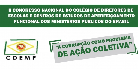 O II Congresso Nacional do Colégio de Diretores de Escolas dos Ministérios Públicos acontecerá em Florianópolis, no edifício sede do Ministério Público de Santa Catarina, no auditório Luiz Carlos Schimidt de Carvalho, entre os dias 27 e 28 de novembro.