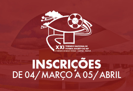 Inscrições para o XXI Torneio Nacional de Futebol Society e Torneio Nacional de Beach Tennis do Ministério Público iniciarão no dia 04 de março