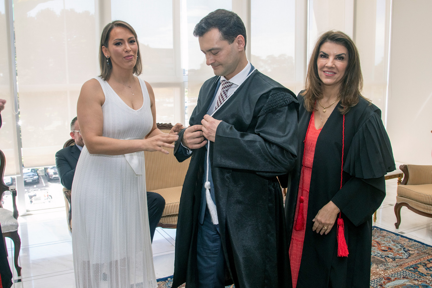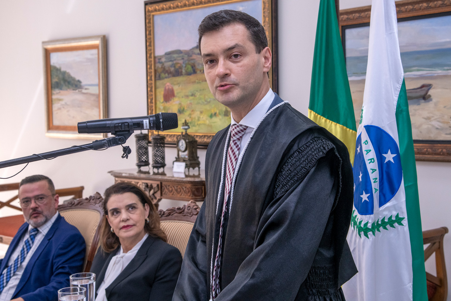 Em seu discurso de posse, o novo desembargador prestou agradecimentos aos presentes e discorreu sobre sua trajetória: “Peço licença às desembargadoras e aos desembargadores deste tribunal, peço licença às juízas e aos juízes substitutos de 2° grau, peço licença às juízas e aos juízes do 1° grau, peço licença para ingressar em vossa casa, e para que eu possa ter oportunidade de honrar como magistrado da jurisdição graduada o respeito e a consideração da instituição de origem e honrar o meu trabalho e dedicação à experiência de todos que representam o TJPR. Peço licença para que já não seja mais visitante, mas efetivo residente dessa nobre corte judicial”.