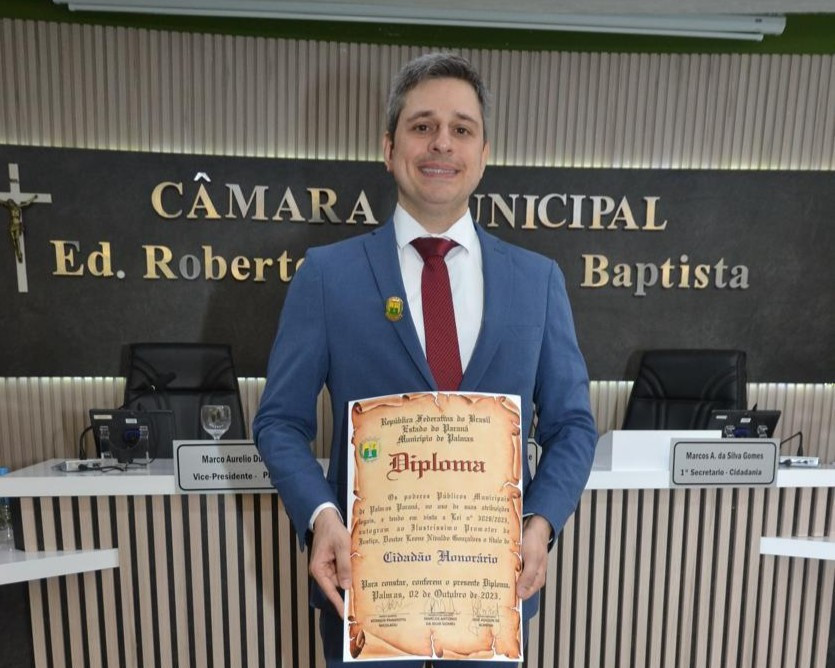 O Promotor de Justiça e associado da APMP Leone Nivaldo Gonçalves foi homenageado com o título de Cidadão Honorário de Palmas, em cerimônia realizada no dia 13 de dezembro, na Câmara de Vereadores da cidade.