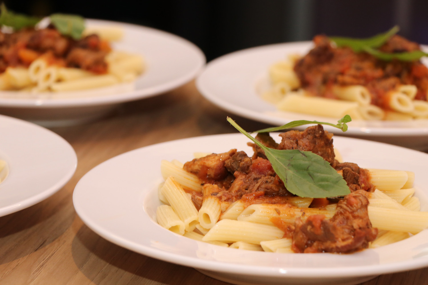 O encontro começou com um welcome drink natalino acompanhado de snacks, cogumelos recheados e coquetel de camarão. Como entrada, foi servido um ceviche, seguido pelo prato principal: Ragu Tucci com massa tipo Rigati. A sobremesa, que encerrou a experiência com um toque especial, foi uma torta de nozes e figo seco à moda do Chef.
