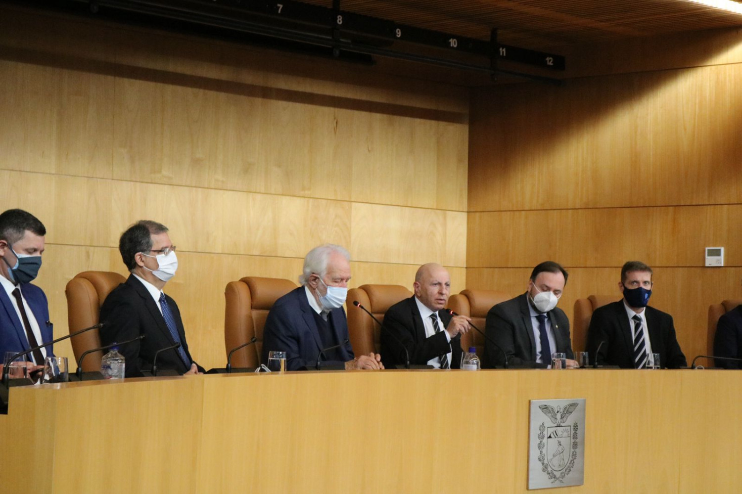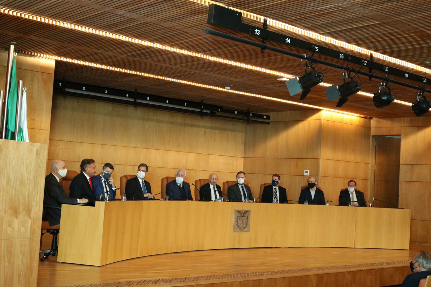 O governador em exercício Darci Piana, o senador Álvaro Dias, os deputados federais Gustavo Fruet e Reinhold Stephanes Junior, o presidente da Assembleia Legislativa do Paraná, Ademar Traiano, e o presidente do Tribunal de Contas do Paraná, Fábio Camargo participaram da mobilização conjunta promovida pelo Ministério Público do Paraná (MPPR) e pela Associação Paranaense do Ministério Público (APMP) contra a aprovação da PEC 5/2021, na manhã desta quarta-feira (13), na sede do Ministério Público do Paraná (MPPR).
