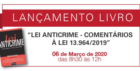 Últimos dias de inscrição para Lançamento do Livro "Lei Anticrime - Comentários à lei 13.964/2019"