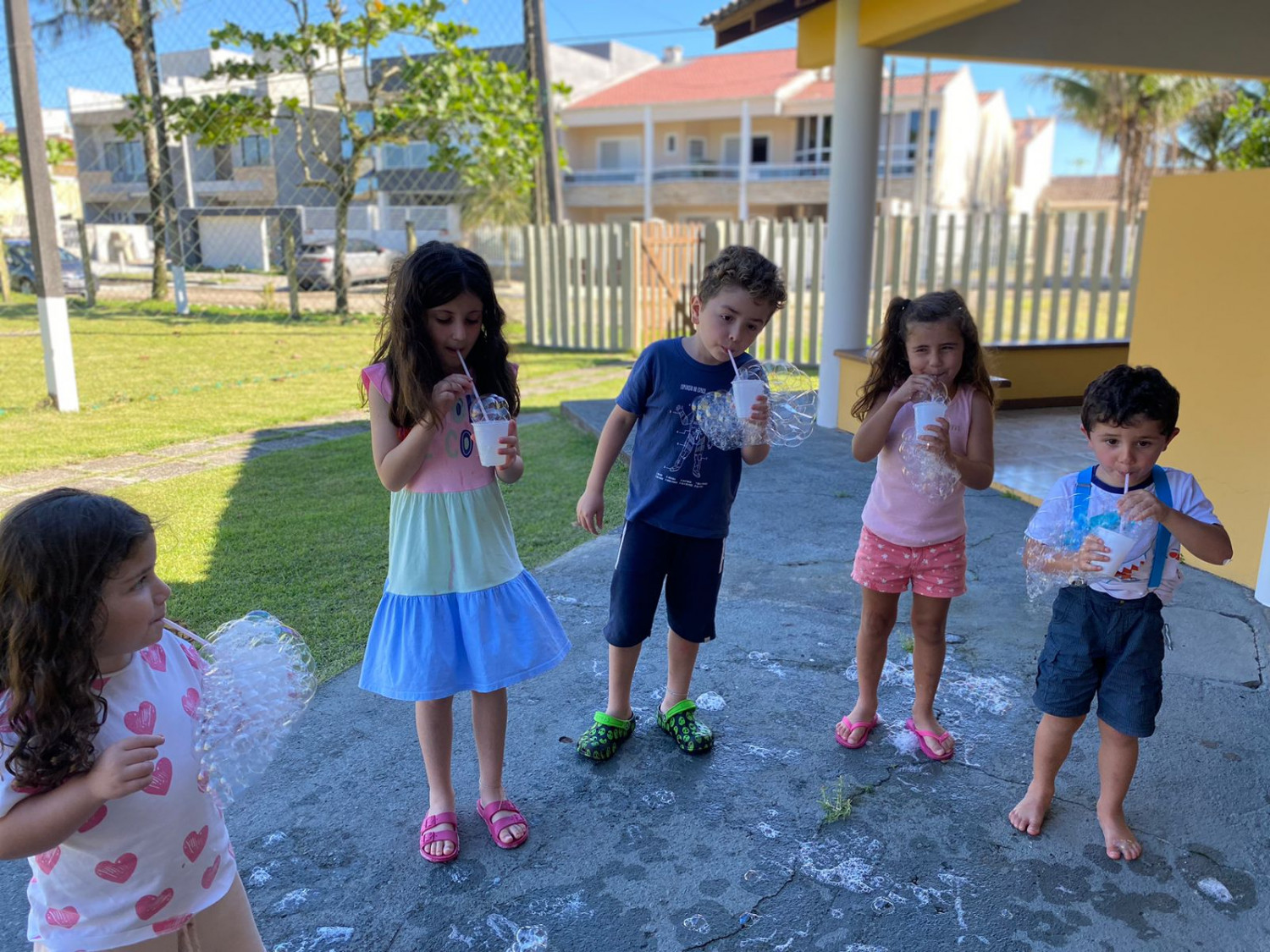 As crianças puderam aproveitar atividades na piscina e na praia, além de jogos e outras atividades lúdicas e recreativas.