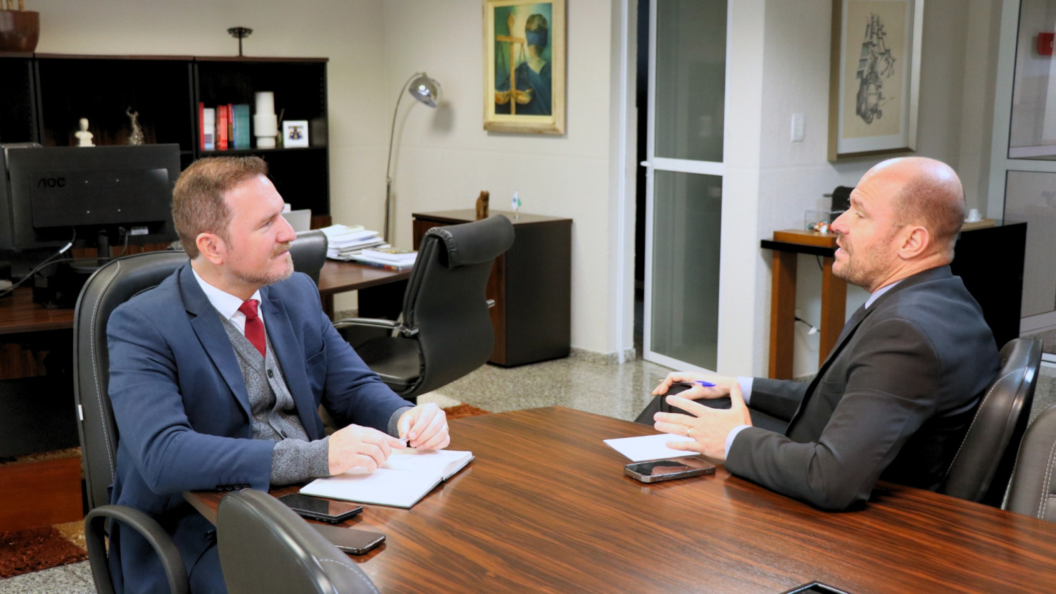 O Presidente da Associação Paranaense do Ministério Público (APMP), Fernando da Silva Mattos, e o Diretor de Esportes e Lazer, Francisco Ilídio Hernandes Lopes, reuniram-se na manhã desta quinta-feira (09) para discutir o planejamento das próximas iniciativas da Diretoria.