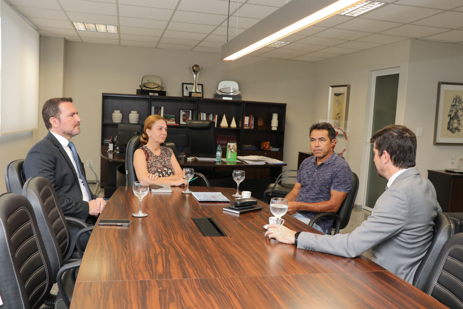 A presidente da APMP, Symara Motter, e o 1º vice-presidente da Associação, Fernando da Silva Mattos, realizaram na tarde de terça-feira (16) uma reunião com o diretor de esportes e lazer da APMP, Daniel Pedro Lourenço, e o novo técnico de futebol contratado pela Associação, Robson Gomes.