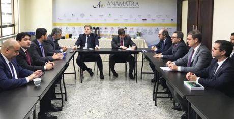 Cláudio e os integrantes do Conselho Deliberativo da CONAMP participaram, na manhã desta terça (27), da reunião da FRENTAS, na sede da Associação Nacional dos Magistrados do Trabalho (ANAMATRA), para tratar sobre a mobilização na Câmara dos Deputados e assuntos de interesse associativo, como a sanção do Presidente Michel Temer nas Leis n° 13.753 e 13.752 de 2018, que dispõem sobre o aumento dos subsídios do Procurador-Geral da República e dos Ministros do STF, respectivamente.