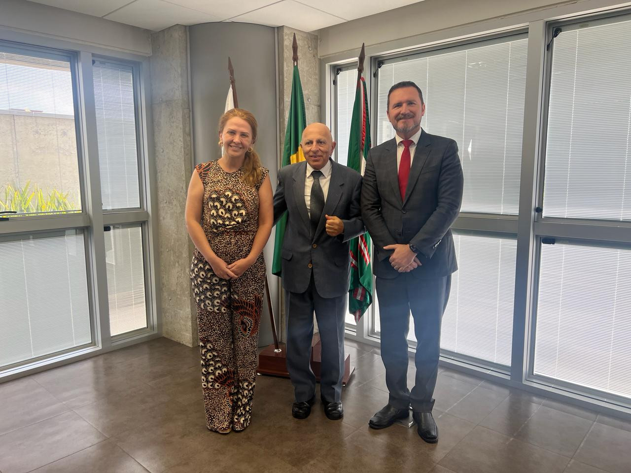 A presidente da APMP, Symara Motter, e o 1º vice-presidente, Fernando da Silva Mattos, se reuniram com o procurador-Geral de Justiça do Paraná, Gilberto Giacoia. O encontro ocorreu na sede do Ministério Público do Paraná, em Curitiba, na última quarta-feira (07).