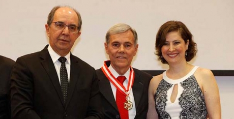 O associado Luiz Celso de Medeiros foi um dos homenageados da noite e recebeu das mãos de Victor Hugo Palmeiro de Azevedo Neto, presidente da CONAMP, e de Nayani Kelly Garcia a medalha de Ordem ao Mérito. Para Medeiros, este reconhecimento deve ser transmitido a todos os membros do Ministério Público do Paraná que atuaram durante o período da Constituinte.