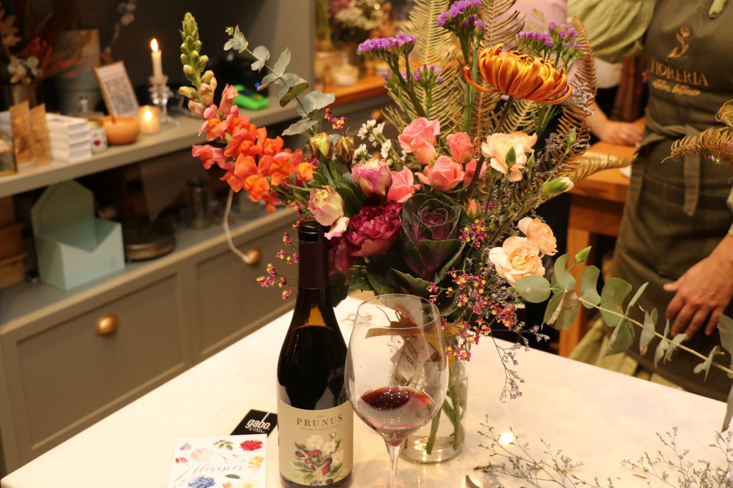 Enquanto os arranjos iam sendo montados, as participantes puderam degustar três rótulos de vinhos selecionados especialmente para a ocasião pela sommelier e proprietária da Gabo Livros e Vinhos, Tati Costs.