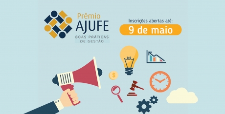 Estão abertas as inscrições para o "Prêmio AJUFE: Boas práticas de gestão", promovido pela Associação dos Juízes Federais do Brasil - AJUFE. O objetivo do prêmio é identificar, valorizar e disseminar boas práticas na Justiça Federal, além de estimular uma gestão participativa e eficiente do judiciário. As inscrições vão até o dia 09 de maio.