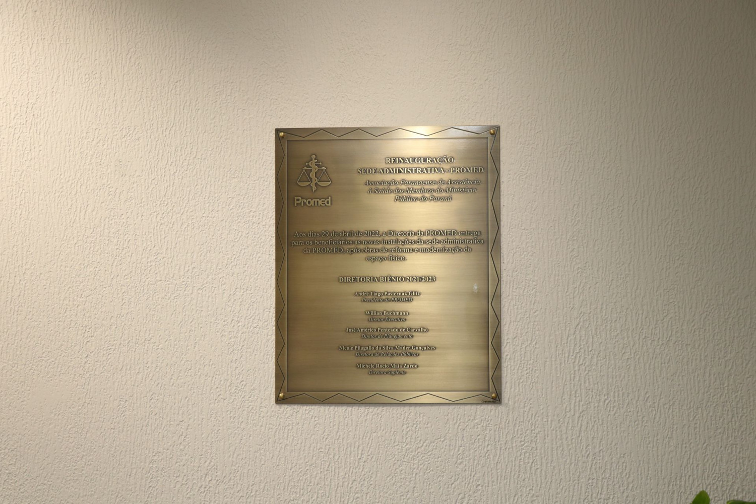 O presidente da APMP, André Tiago Pasternak Glitz, descerrou a placa de inauguração das obras de revitalização da sede administrativa da PROMED, operadora de planos de assistência à saúde, que presta serviços de assistência médica exclusiva aos membros do Ministério Público do Paraná e seus dependentes, na manhã desta sexta-feira (29). As novas instalações tornaram o espaço físico mais moderno e com melhor aproveitamento dos ambientes. “O Conselho Diretor teve participação imprescindível para que esse trabalho fosse realizado e eles simbolizam a dedicação do trabalho voluntário em prol dos beneficiários, o que tem nos permitido cumprir com os compromissos assumidos em 2019, um deles foi o de entregar algo mais funcional para que colaboradores e beneficiários tenham um ambiente mais adequado para o desempenho das atividades”.