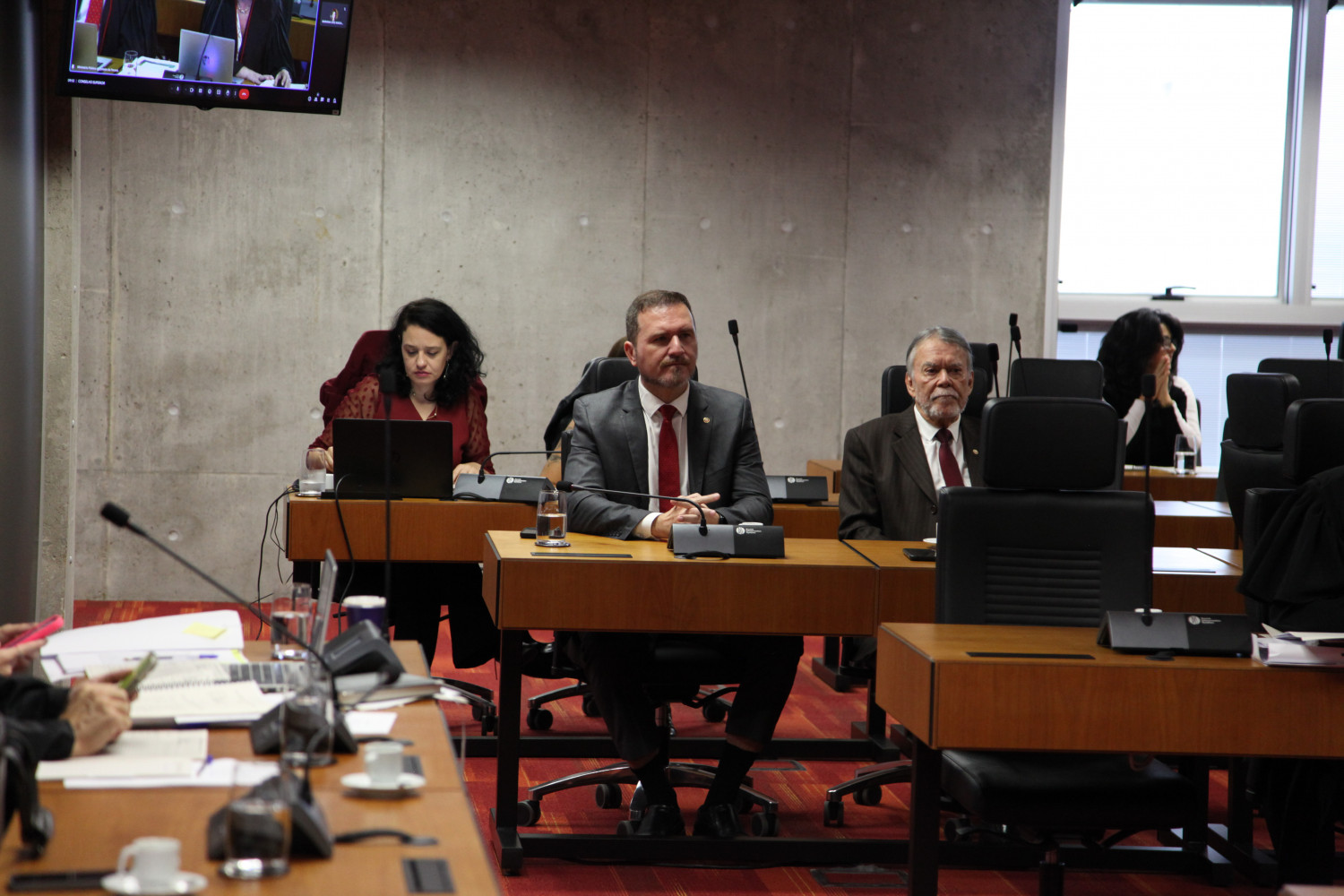 A Presidente Symara Motter participou da sessão de forma remota, diretamente de Brasília, onde integra a reunião do Conselho Deliberativo da CONAMP. Já o 1º Vice-Presidente, Fernando da Silva Mattos, esteve presencialmente no plenário. Também compareceram a Diretora de Mulheres Associadas da APMP, Mariana Dias Mariano, a Diretora de Eventos Culturais, Heloise Bettega Kuniyoshi Casagrande, e a integrante da Comissão de Apoio da Diretoria de Mulheres, Mariana Andreola de Carvalho Silva, além de diversas outras associadas da entidade.