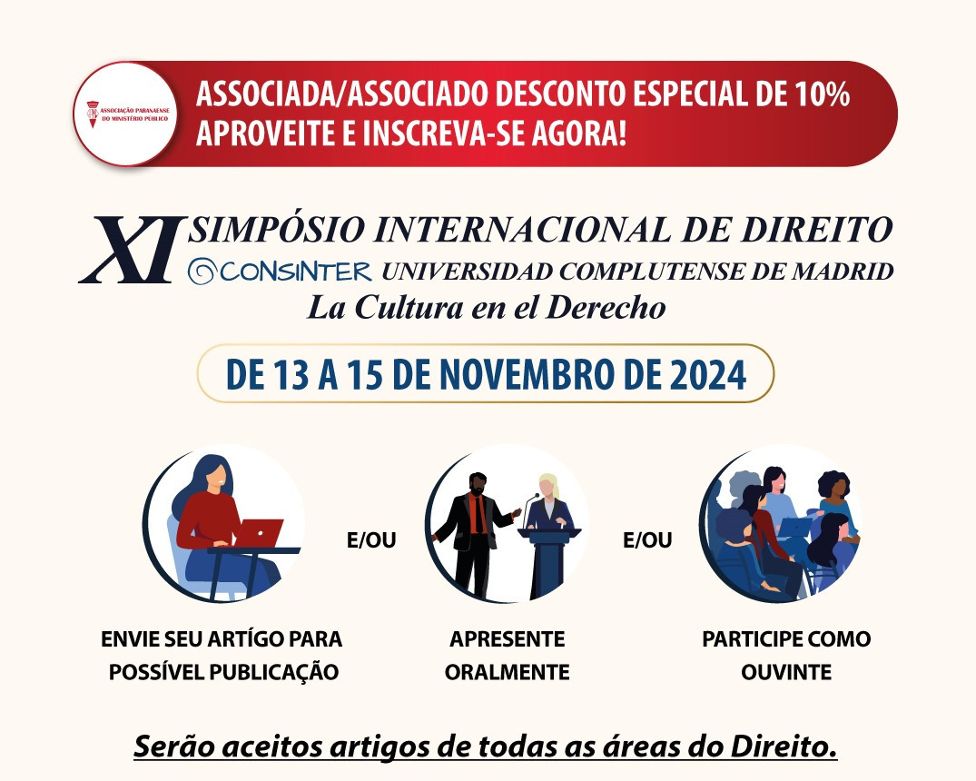 O CONSISTER (Conselho Internacional de Estudos Contemporâneos em Pós-Graduação) prorrogou, até o dia 30 de agosto, o prazo de inscrições para o XI Simpósio Internacional de Direito, que será realizado entre os dias 13 e 15 de novembro, na Universidade Complutense de Madrid, na Espanha. Associados e associadas também têm 10% de desconto na submissão de artigos, que poderão ser publicados na Revista Internacional CONSISTER de Direito e no livro Direito e Justiça. Saiba mais nos links abaixo: