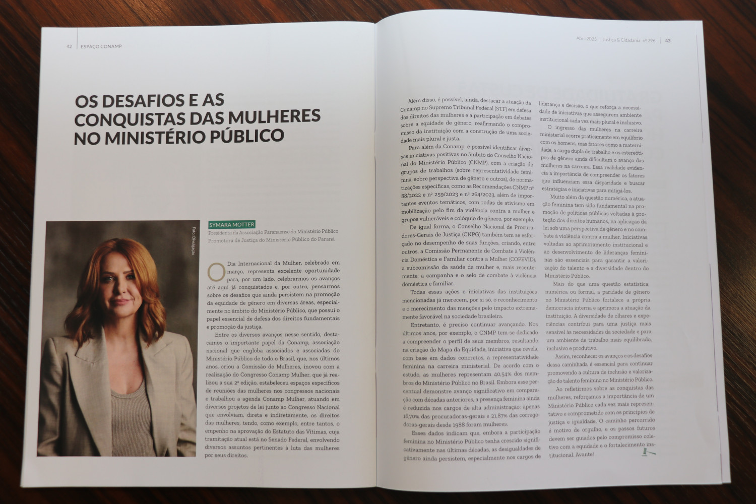 A edição do mês de abril da revista Justiça & Cidadania, uma das mais respeitadas publicações jurídicas do país, traz um artigo da Presidente da Associação Paranaense do Ministério Público (APMP), Symara Motter.