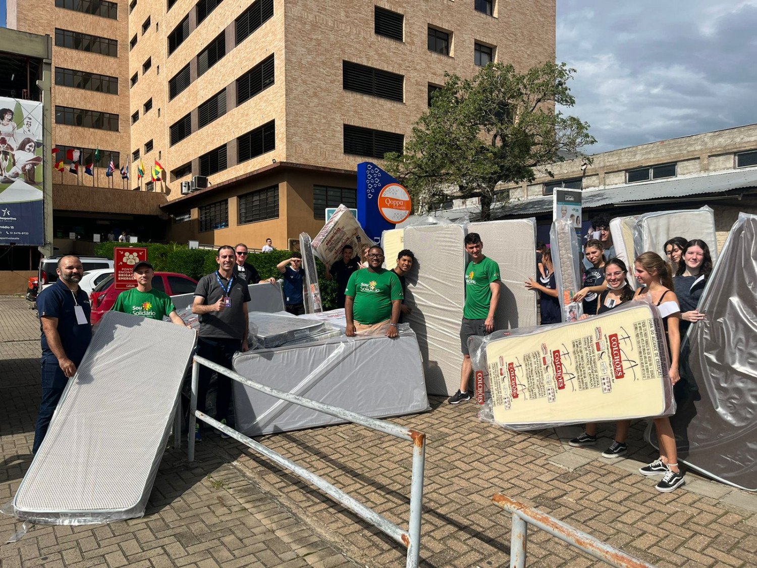 Em Canoas, na região metropolitana, a AMP/RS realizou a doação de 71 colchões à Universidade La Salle, que abriga 700 pessoas desalojadas pelas enchentes. Com a entrega, a Associação contribui para amparar os desabrigados. A doação ocorreu na quinta-feira, dia 8 de maio.