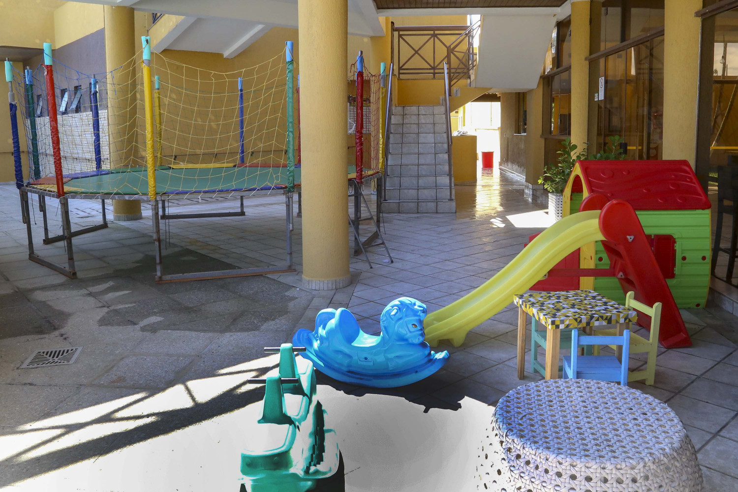 Para o parque infantil, ao lado da piscina, foram adquiridos novos brinquedos. As crianças de 2 a 5 anos poderão usufruir de uma área de recreação com cama elástica, cavalinho e escorregador, entre outras brincadeiras. Todo o mobiliário do playground é de plástico duro para maior segurança das crianças e melhor higienização.