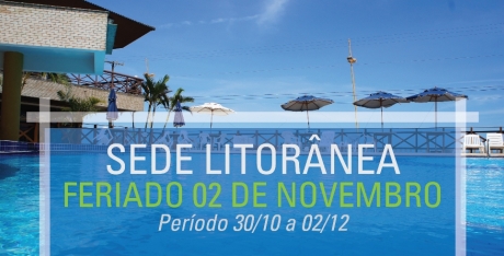 Informamos que devido ao feriado de Finados a ocupação da sede Litorânea acontecerá de forma diferenciada. Os associados interessados podem solicitar a reserva para o período de 30 de outubro a 02 de novembro pelo sistema de reservas on-line ou através do telefone (41 )3352-2919, com a Silvana, até às 12h, do dia 23 de outubro.