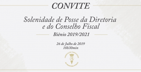 A Associação Paranaense do Ministério Público (APMP) realizará, no dia 26 de julho de 2019, a solenidade de Posse da nova Diretoria e Conselho Fiscal, para o Biênio 2019/2021. A cerimônia terá início às 18h30min e ocorrerá no auditório Ary Florêncio Guimarães, localizado na Rua Marechal Hermes, n° 751, térreo, no bairro Centro Cívico, em Curitiba.