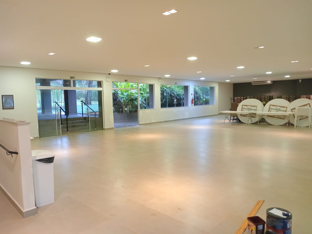Entre as principais intervenções estão a pintura interna de diversos ambientes, como o salão de festas, cozinha, depósitos e vestiários, além da renovação da área da churrasqueira/quiosque, garantindo maior conservação e renovação visual dos espaços de convivência.