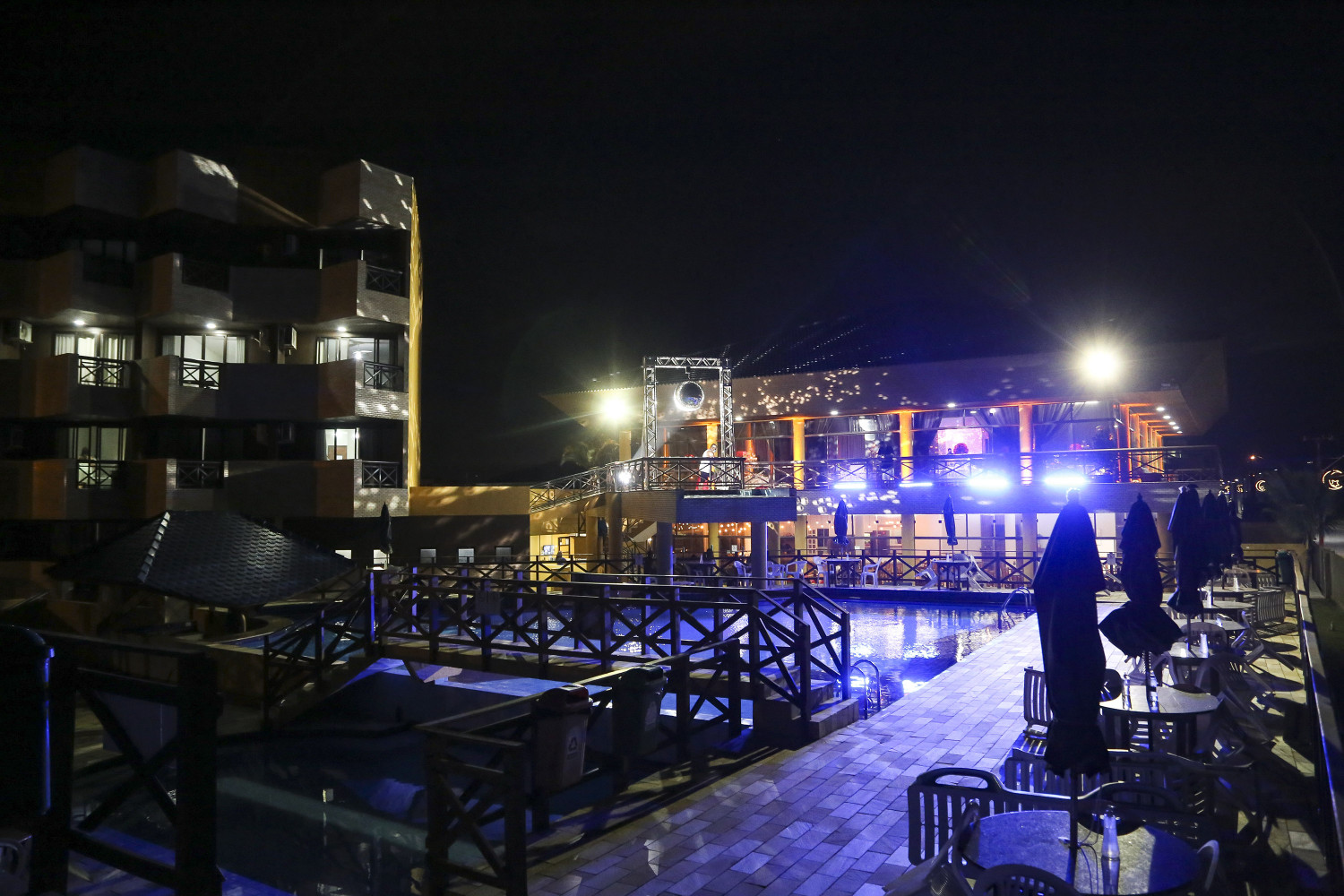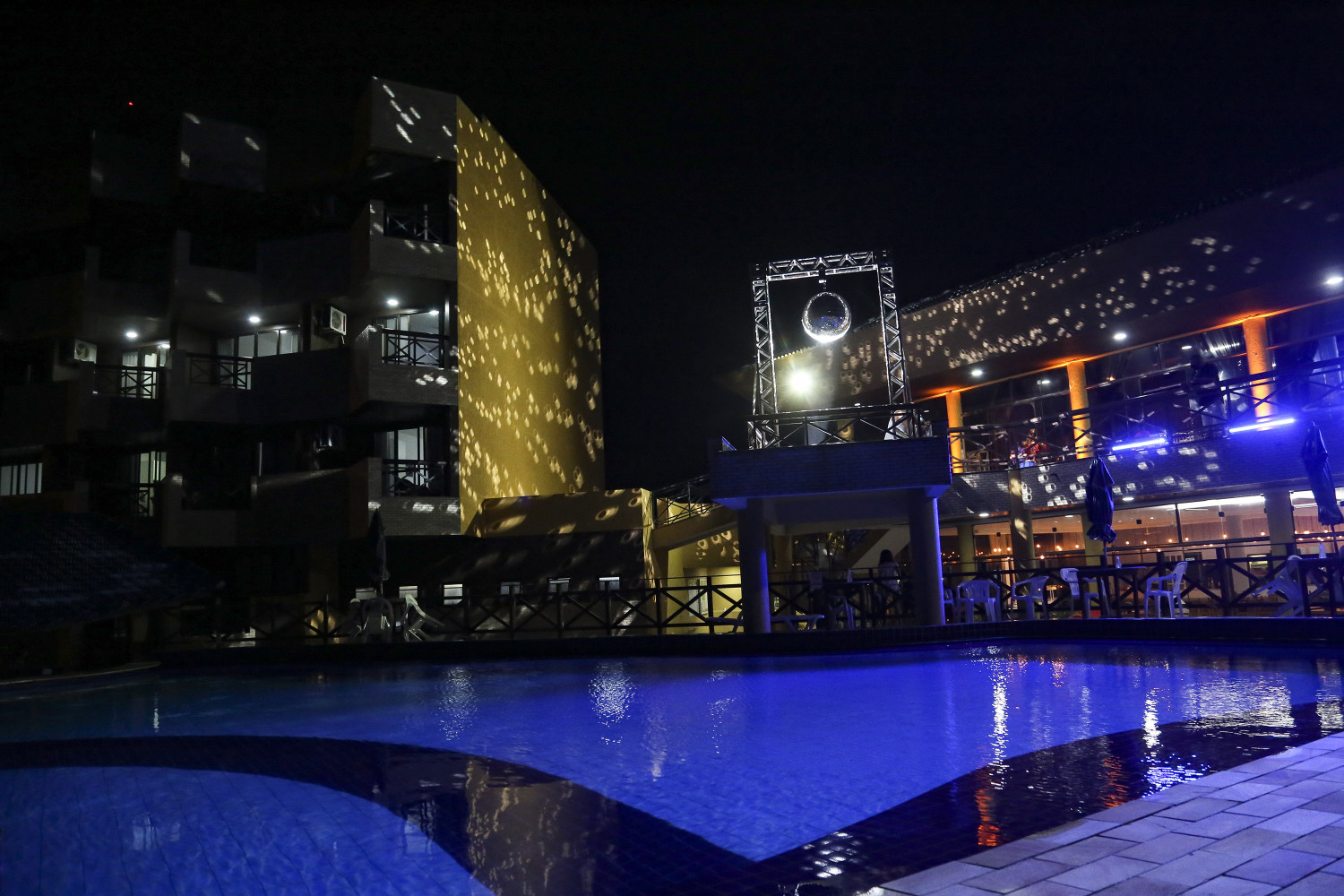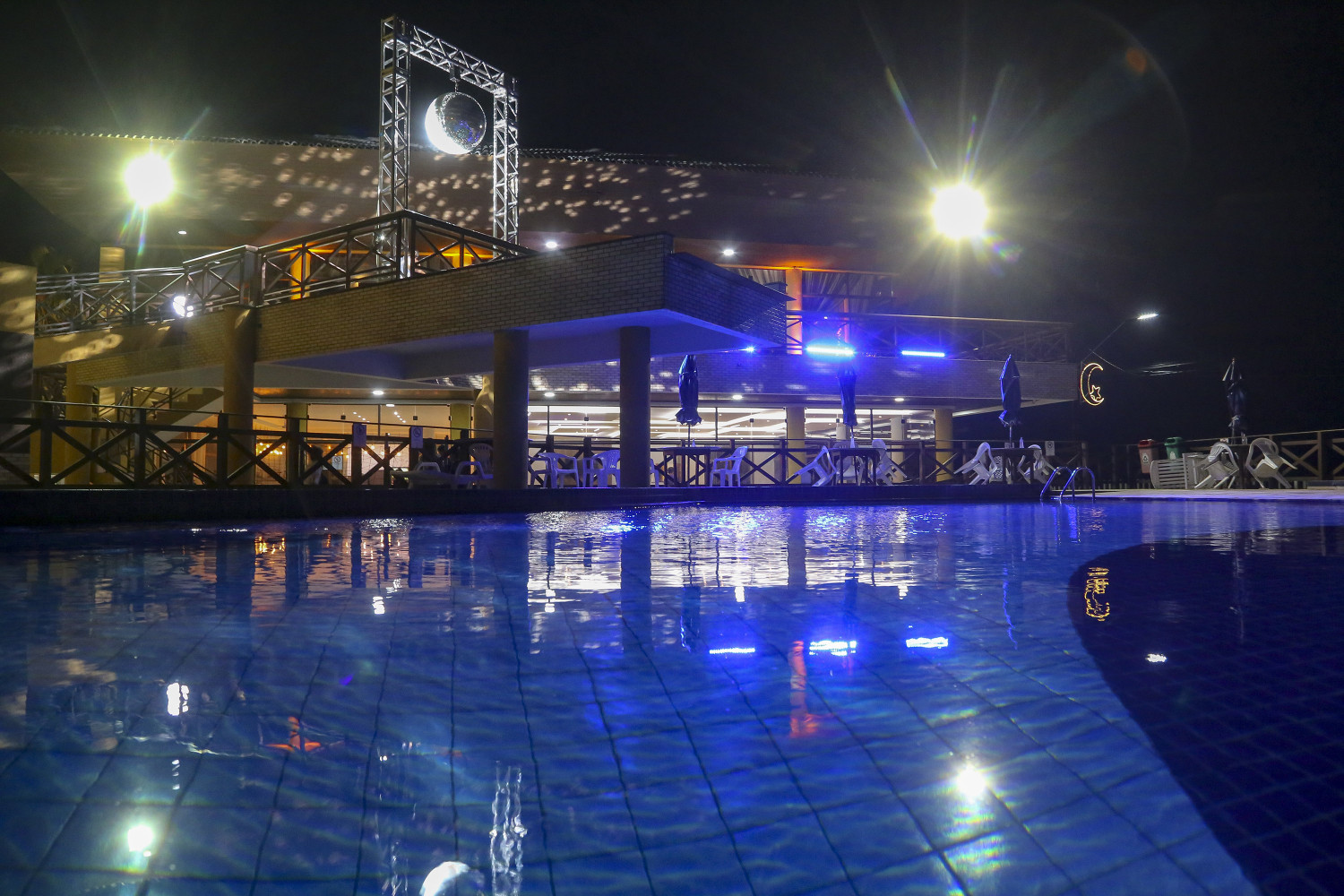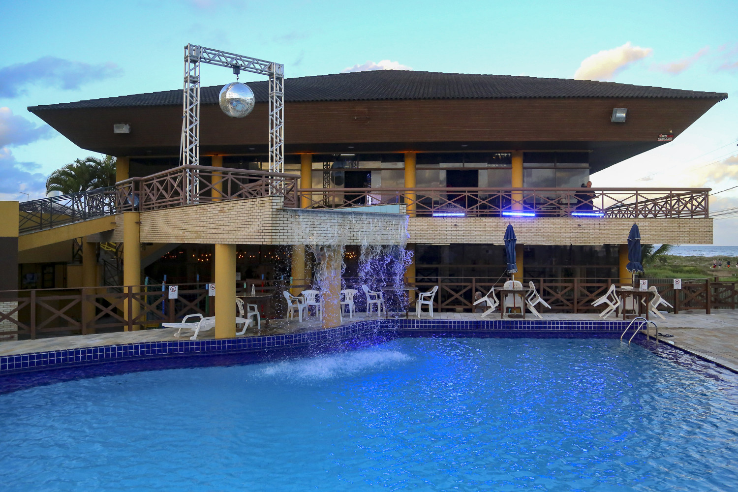 A sede litorânea tem quatro piscinas, sendo duas aquecidas e duas frias.