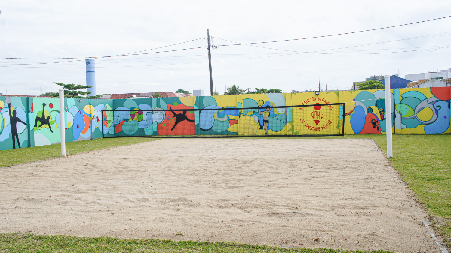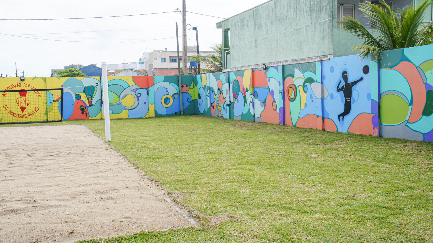 E a novidade na sede litorânea da APMP não ficou por conta somente da nova quadra. Ao entorno da área, os muros foram grafitados de maneira temática, remetendo às atividades esportivas de areia, tão presentes na Associação.