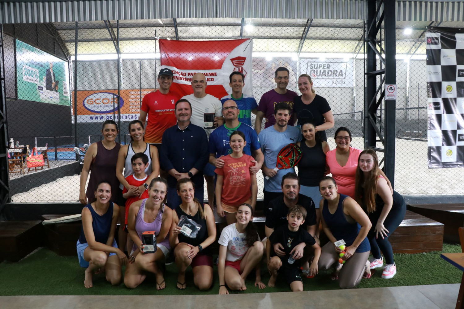 A APMP promoveu, neste fim de semana, o Torneio Estadual de Beach Tennis 2025, realizado no bairro Ecoville, em Curitiba. A competição reuniu associados de diversas regiões do Paraná, além de familiares, em um encontro marcado pela descontração e espírito esportivo.