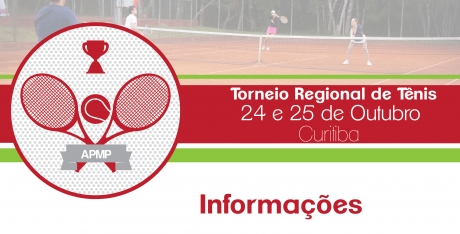 A APMP realizará nos dias 24 e 25 de outubro o Torneio Regional de Tênis. Os jogos acontecerão na sede campestre, em Colombo, e estão inscritos 19 associados que foram sorteados em quatro grupos. Confira aqui.