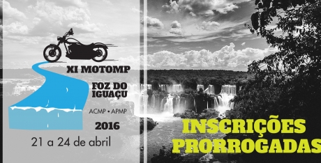 Foram prorrogadas as inscrições para a 11ª edição do Moto MP. Os interessados em participar ainda têm uma última chance e até o dia 08 de abril podem confirmar a presença no evento. O encontro acontecerá de 21 a 24 de abril e promete conduzir os participantes por belos roteiros motociclísticos na região das Cataratas do Iguaçu.