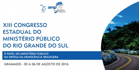 Nos dias 03 a 06 de agosto de 2016, será realizado o XIII Congresso Estadual do Ministério Público do Rio Grande do Sul, que tem como tema “O papel do Ministério Público na defesa da democracia brasileira”. O evento será realizado no Hotel Serra Azul, que fica localizado na cidade de Gramado, na Serra Gaúcha.